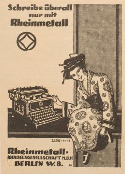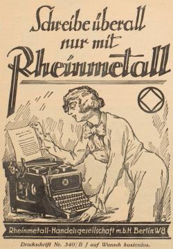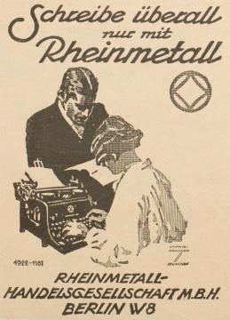 Werbeanzeige für Schreibmaschine Rheinmetall monochrom