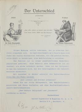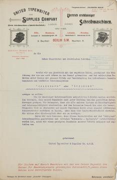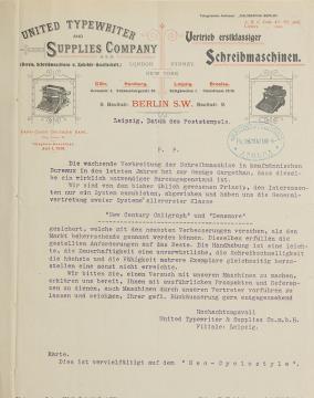 Rundschreiben/Werbebrief der United Typewriter & Supplies Co.mbH, Berlin Maschinenschrift, Handschrift