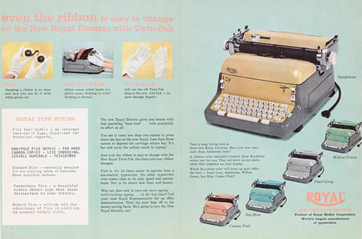 Faltprospekt für elektrische Schreibmaschine Royal Nr. xx56-585