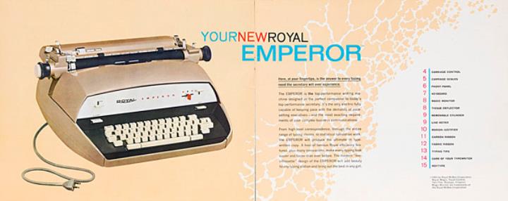 Prospekt für elektrische Schreibmaschine Royal Emperor The ultimate in office electrics Nr. F-63-244