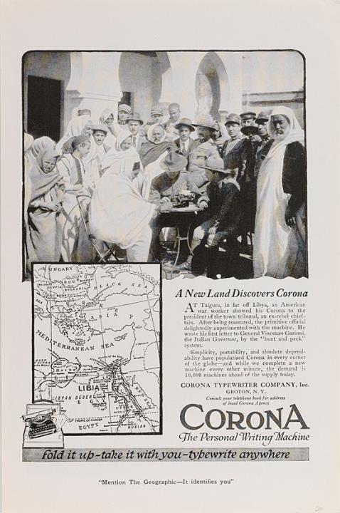 Werbeanzeige für Schreibmaschine Corona monochrom