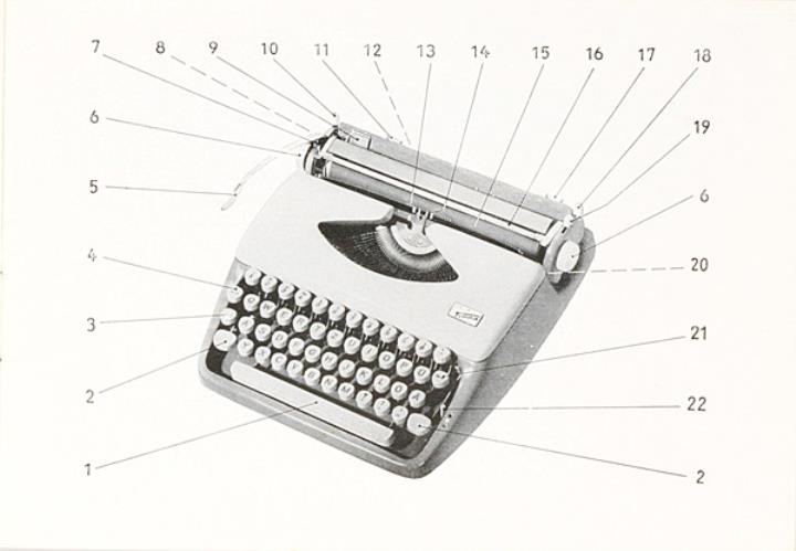 Tragbare Schreibmaschine, Reiseschreibmaschine, Typenhebel
