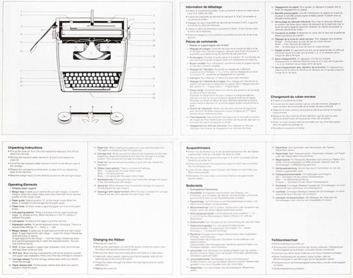 Bedienungsanleitung fünfsprachig für Schreibmaschine Triumph-Adler Junior Nr. 89125000 Beilage: Rechnung vom 16.2.92 für Schreibmaschine TA Junior Gabriele