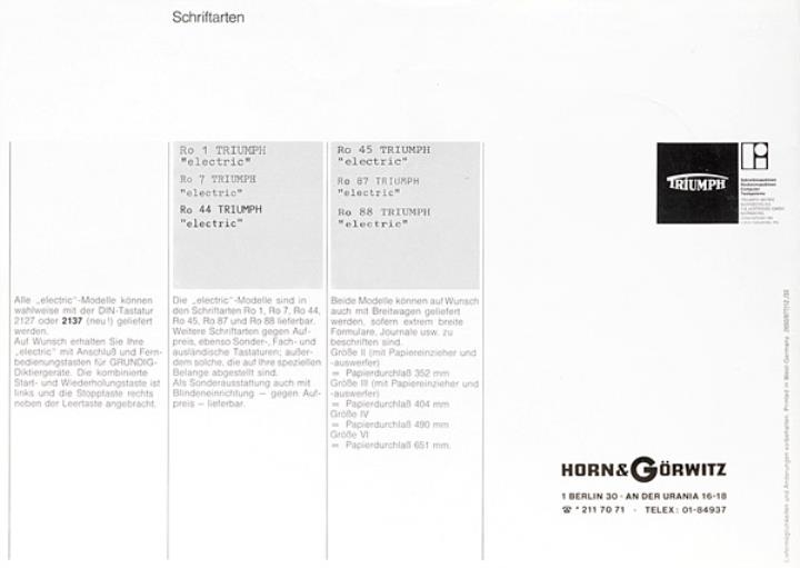 Faltprospekt für Schreibmaschine Triumph electric 131 und 151 Nr. 2650/877/12./33