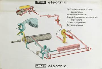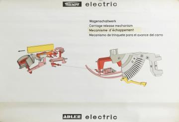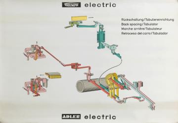 Technische Detailzeichnung zu Grossbuchstabenumschaltung und Leerschaltung der Schreibmaschine Triumph / Adler electric Papier gewebeverstärkt zwei Exemplare