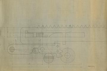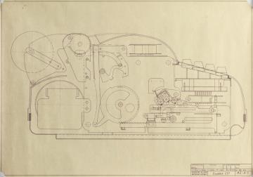 großformatige technische Detailzeichnung zur Zehnerschaltung einer nicht näher definierten Rechenmaschine datiert 24.1.1958; signiert
