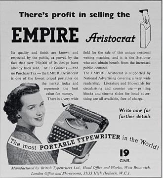 Werbeanzeige für Schreibmaschine Empire Aristocrat monochrom
