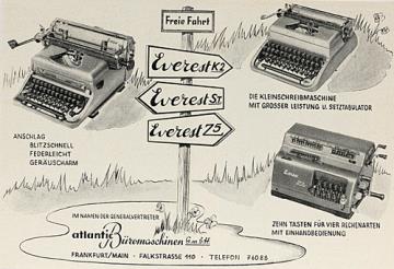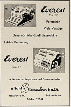Werbeanzeige für Schreibmaschine und Rechenmaschine Everest monochrom