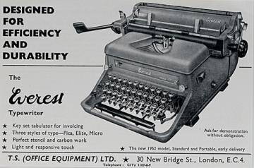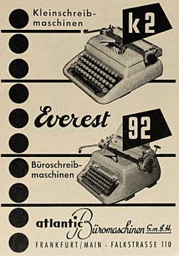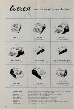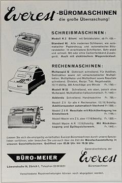 Werbeanzeige für Schreibmaschinen und Rechenmaschinen Everest monochrom