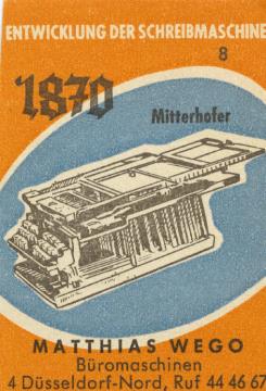Reklamemarke/Werbemarke einer Serie (Matthias Wego Büromaschinen); rechteckig, polychrom 1870. Mitterhofer