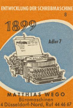 Reklamemarke/Werbemarke einer Serie (Matthias Wego Büromaschinen); rechteckig, polychrom 1899. Adler 7