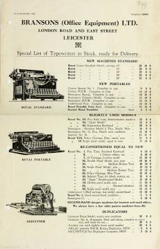 Prospekt der Schreibmaschinenhandlung Bransons Ltd. Leicester