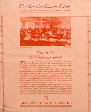 Beilage einer Packung Kohlepapier der Caribonum Ltd./London, welche als Unterblatt bei Durchschriften mit der Schreibmaschine benutzt wurde