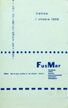 Faltprospekt mit Preisliste der Schreibmaschinenhandlung FusMar, Milano Stand: 1.10.1958