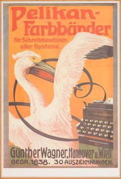 Werbeplakat für Schreibmaschinenfarbband Pelikan Nachdruck, poychrom