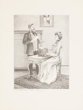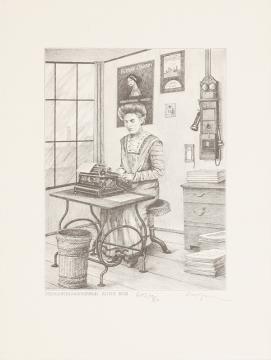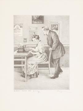 Grafik; Blatt 1 einer Serie (Historische Bureau-Szenen), Künstlerin: Barbara Hohmann monochrom, Nr. 645/980