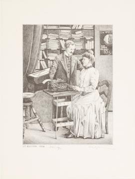 Grafik; Blatt 4 einer Serie (Historische Bureau-Szenen), Künstlerin: Barbara Hohmann monochrom, Nr. 645/980