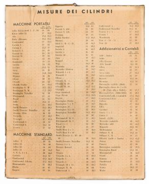 Liste mit Schreibwalzengrößen für Schreibmaschinen und Rechenmaschinen verschiedener Hersteller