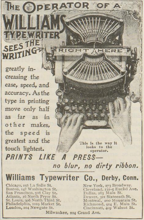 Werbeanzeige für Schreibmaschine Williams monochrom