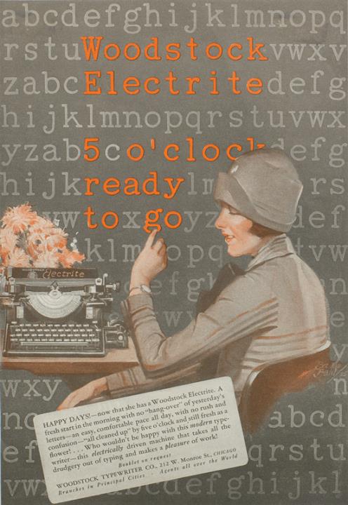 Werbeanzeige für Schreibmaschine Woodstock polychrom