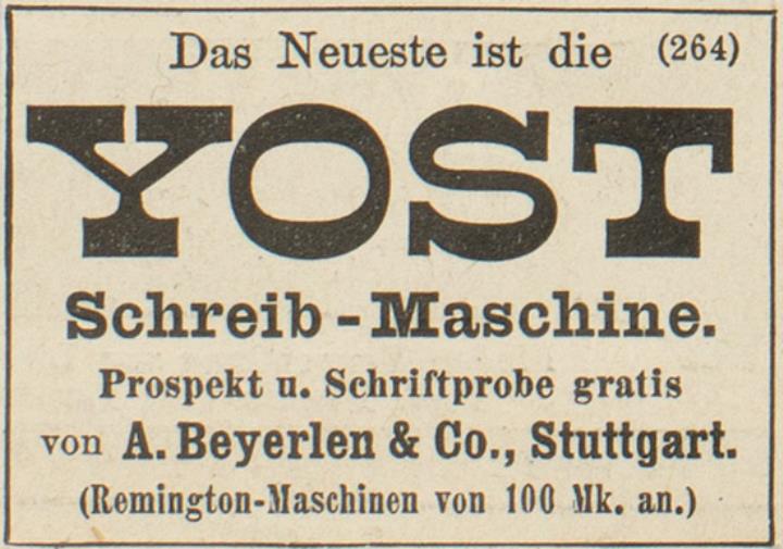Werbeanzeige für Schreibmaschine Yost monochrom