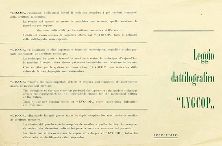 Prospekt für Kopierapparat Lygcop, drei Exemplare