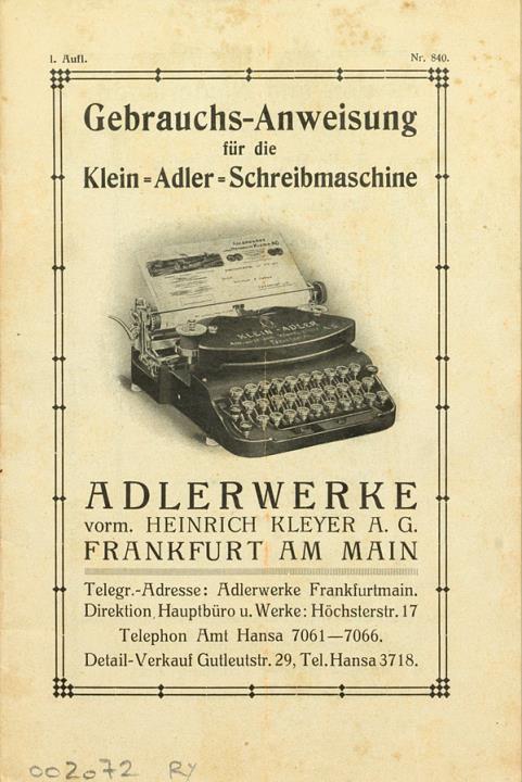 Bedienungsanleitung für Schreibmaschine Klein-Adler Nr. 840