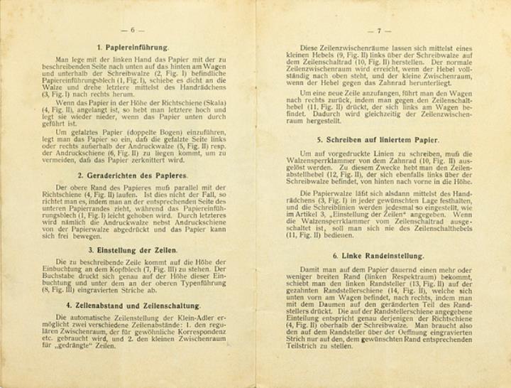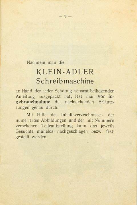 Klein-Adler Schreibmaschine Gebrauchs-Anweisung