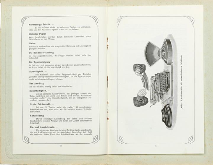 Next to literature on the history of technology, of the typewriter and the office, the Archive holds patent letters, textbooks and instruction manuals as well as historical postcards, letters, photographs and various kinds of advertising (leaflets and brochures, advertising stamps, newspaper ads, posters and signs, promotional gifts).