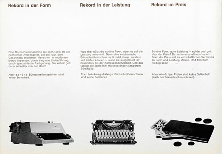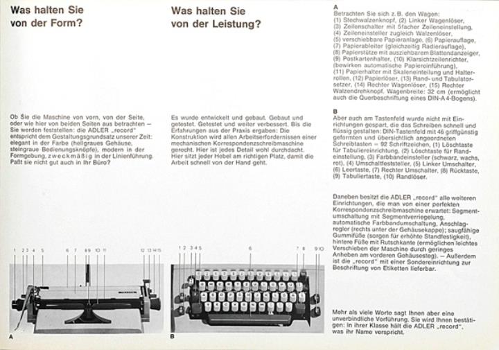 Faltprospekt für Schreibmaschinen Adler record Nr. A 585/465/73