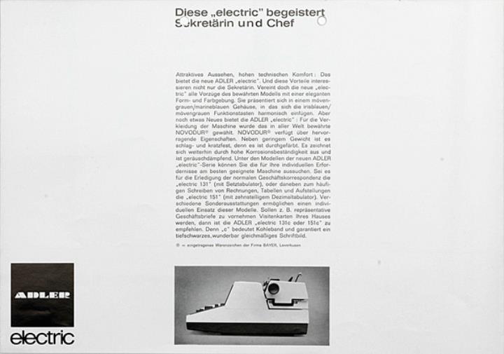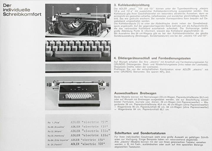 Faltprospekt für Schreibmaschine Adler electric 131 und 151 Nr. A 631 a/467/12