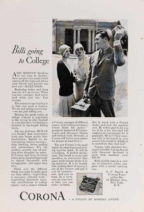 Werbeanzeige für Schreibmaschine Corona monochrom