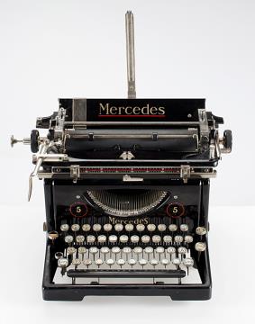 Schreibmaschine Mercedes 5 Eigenschaften: Typenhebel, Vorderanschlag, einfache Umschaltung, Farbband, Tabulator Konstrukteur: Karl Schlüns Tastatur: universal, vierreihig, 44 Schreibtasten Besonderheit: in drei Teile zerlegbar