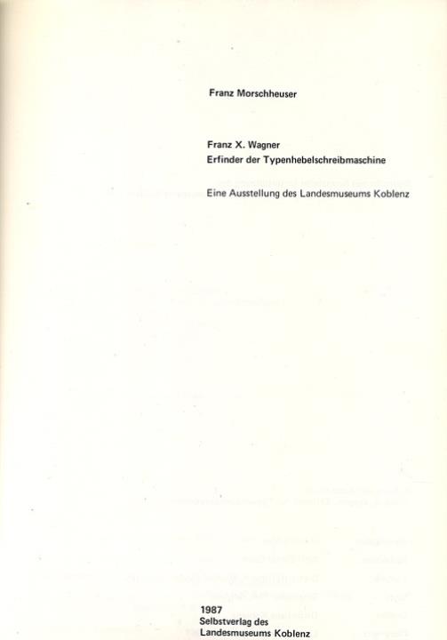 Franz X. Wagner. Erfinder der Typenhebelschreibmaschine