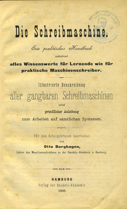 Die Schreibmaschine. Ein praktisches Handbuch enthaltend alles Wissenswerte für Lernende wie für praktische Maschinenschreiber.