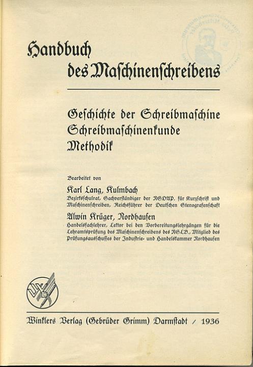 Geschichte der Schreibmaschine. Schreibmaschinenkunde. Methodik