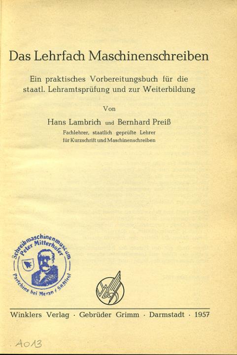 Lambrich, Hans, Preiß, Bernhard, Winklers Verlag Gebrüder Grimm