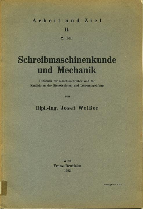 Schreibmaschinenenkunde und Mechanik: Hilfsbuch für Maschinenschreiber und für Kandidaten der Stenotypisten- und Lehramtsprüfung