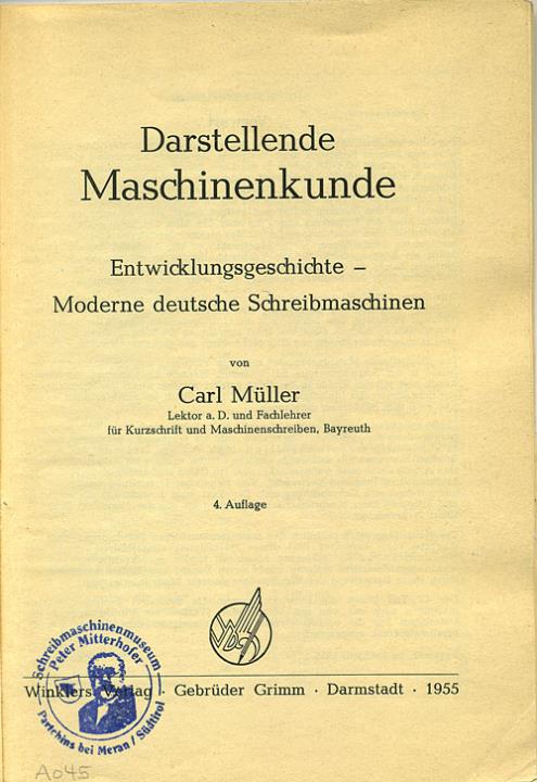 Darstellende Maschinenkunde und Entwicklungsgeschichte der Schreibmaschine in Querschnitten