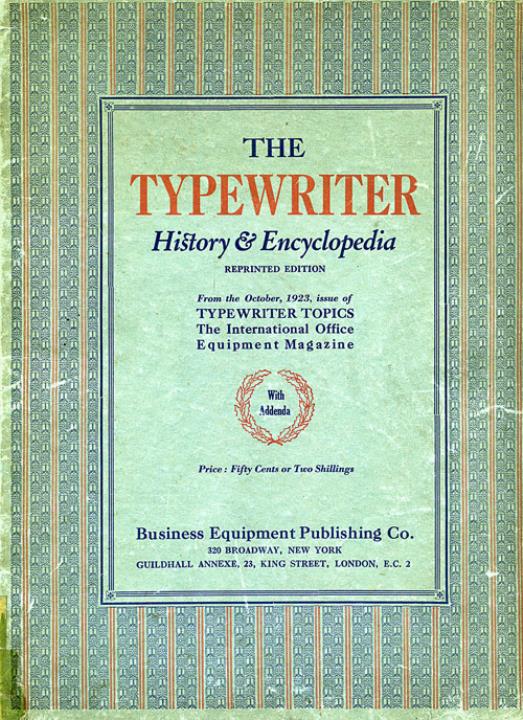 Condensed History of the Writing Machine reprinted edition from the October, 1923, issue of Typewriter Topics. The International Office Equipment Magazine nicht vollständig