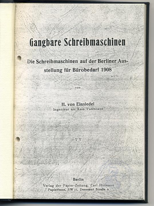 Die Schreibmaschinen aus der Berliner Ausstellung für Bürobedarf 1908 Fotokopie