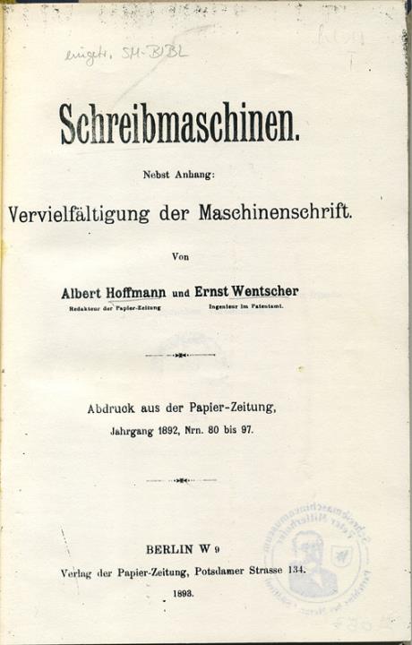 Hoffmann, Albert, Wentscher, Ernst, Verlag der Papier-Zeitung, Hofmann, Carl
