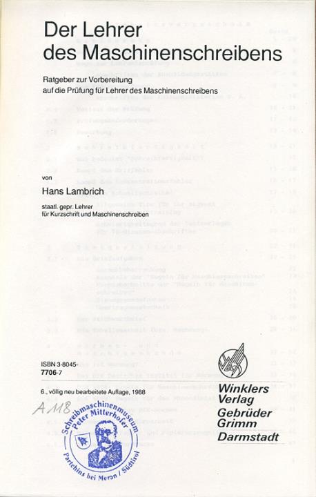 Ratgeber zur Vorbereitung auf die Prüfung für Lehrer des Maschinenschreibens 6. völlig neu bearbeitete Auflage; ISBN 3-8045-7706-7 Fotokopie