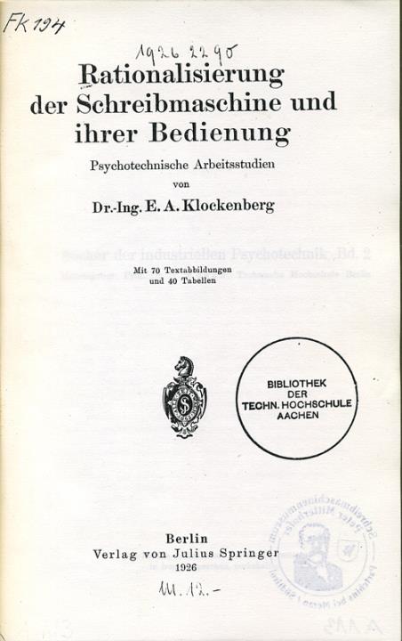 Rationalisierung der Schreibmaschine und ihrer Bedienung