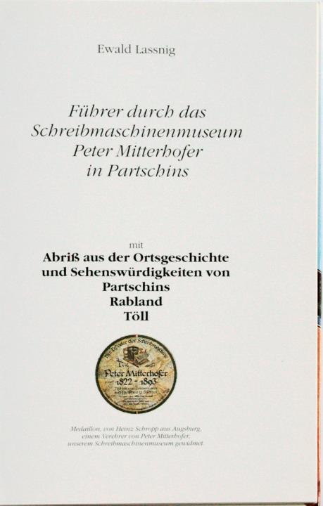 Führer durch das Schreibmaschinenmuseum Peter Mitterhofer in Partschins