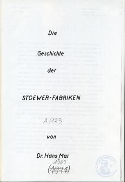 Nähmaschinen- und Fahrräder-Fabrik Bernhard Stoewer Actiengesellschaft (1858-1933): Ein Abriß der Werks- und Fabrikationsgeschichte; Vorwort von Jürgen Stoewer Abschrift (Maschinenschrift), Fotokopie