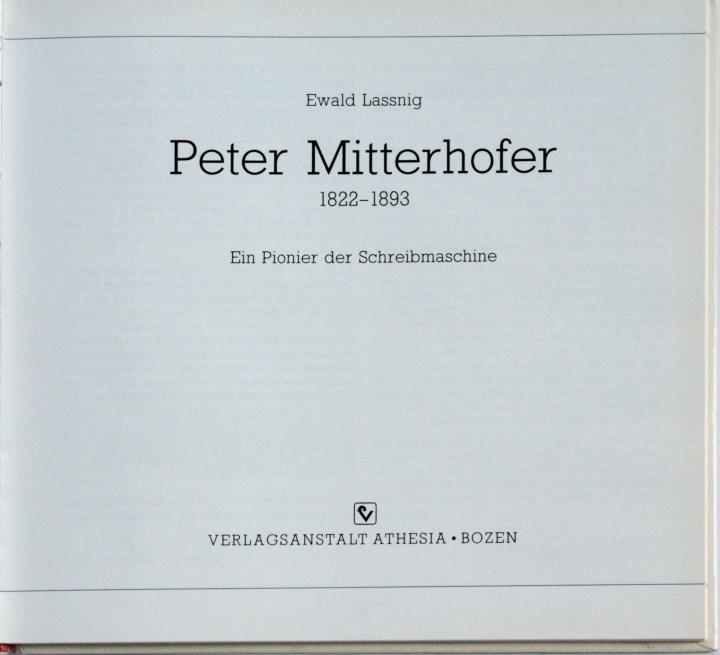 Peter Mitterhofer 1822 - 1893. Ein Pionier der Schreibmaschine