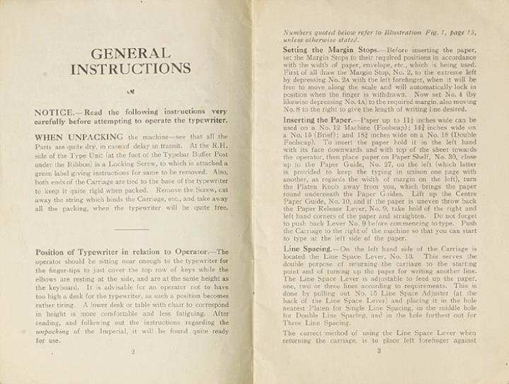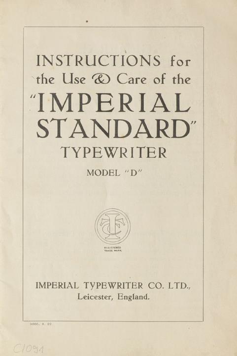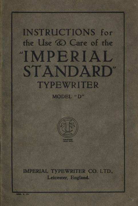 Instructions for the Use & Care of the Imperial Standard Typewriter Model D