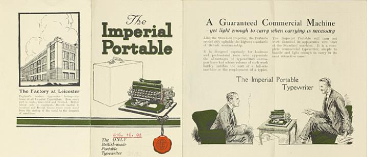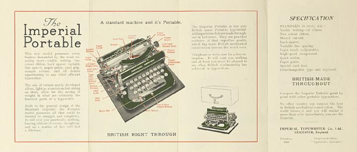 Faltprospekt für tragbare Schreibmaschine Imperial The ONLY British-made Portable Typewriter
