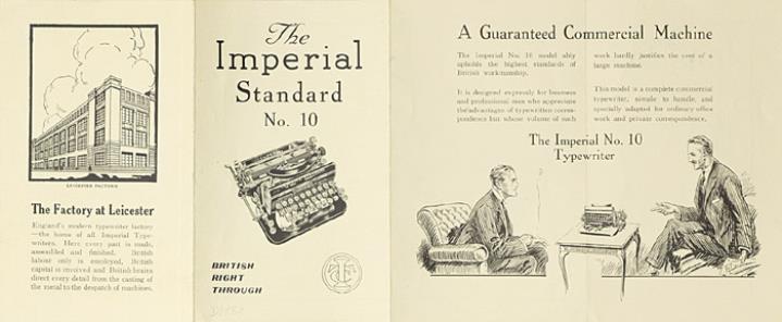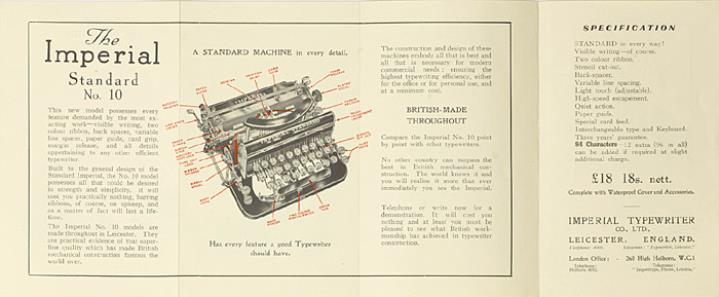 Faltprospekt für Schreibmaschine Imperial Standard 10
